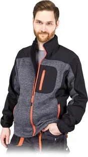 Bluza ochronna dzianina 100% poliester 300 g/m2 suwak stójka 3 zasuwane kieszenie czarne wstawki SOFTSHELLu ciemnoszaro-czarno-pomarańczow FORECO-S XL