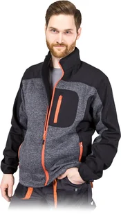 Bluza ochronna dzianina 100% poliester 300 g/m2 suwak stójka 3 zasuwane kieszenie czarne wstawki SOFTSHELLu ciemnoszaro-czarno-pomarańczow FORECO-S M