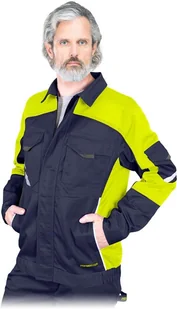 PROX-JBluza ochronna prox. tkanina: 65% poliester, 35% bawełna.Gramatura 295-300 g/m2.Wstawki z żółtego i pomarańczowego materiału 80% poliester, 20% bawełna.Zapinana za zamek błyskawiczny z dodatkowym zapięciem na rzepy.Rękawy za