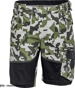 CERVA NEURUM CAMOUFLAGE szorty - męskie szorty robocze, 6 kieszeni, elastyczny materiał Trifibetex z nadrukiem moro, odblaski - ciemnooliwkowy 48