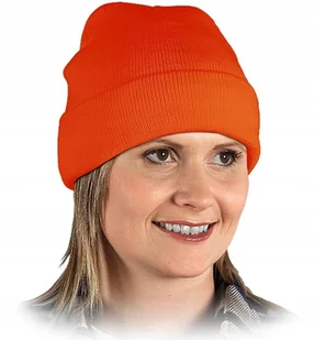 CIEPŁA czapka zimowa robocza POMARAŃCZOWA męska damska WYWIJANA