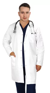 FARTUCH MEDYCZNY - LEKARSKI MĘSKI Kolor: śnieżnobiały Fartuch medyczny, lekarski dedykowany jest dla przedstawicieli szeroko pojętej branży medycznej (lekarzy, farmaceutów, lekarzy medycyny estetycznej a także pracowników naukowych różnych dziedzin gdzie praca w laboratoriach jest codziennością) a także dla studentów rozpoczynających naukę w szkołach Wykonana jest z mocnej i wysokiej jakości tkaniny, zapewniającej trwałość i komfort noszenia. Fartuch oprócz funkcji ochronnej musi również dobrze wyglądać dlatego stawiamy na funkcjonalność i elegancję Nasze fartuchy idealnie wpiszą się w dresscode: szpitali, przychodni, aptek, klinik medycyny estetycznej, laboratoriów.