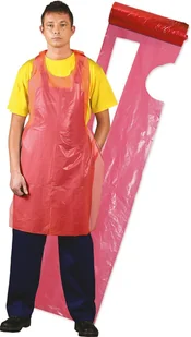 FFOL-ROLL - Fartuch przedni foliowy zakładany na szyję z wiązaniem z tyłu pleców - czerwony