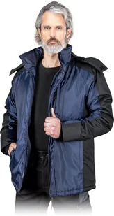 BALTIC - Kurtka ocieplana podszewka stójka suwak listwa napy 4 kieszenie 100% poliester 120 g/m2 kaptur odpinany - granatowo-czarny XL