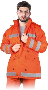 - Kurtka zimowa z pasami odblaskowymi idealna dla drogowców. materiał: 100% Poliester powlekany PVC o gramaturze 180 g/m2.