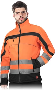 NEMO - męska kurtka SOFTSHELL ochronna, stójka, 3 kieszenie, powłoka 100% poliester, pasy odblaskowe - pomarańczowo-czarny L
