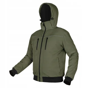 Materiał: tkanina elastomultester Mini w jodełkę,Skład: 100% poliester,Gramatura materiału głównego: 190 g/m2,Wypełnienie: 180 g/m2. Kolor: zielony, czarne wstawki odblaskowe. Kurtka roboczaNEO TOOLS ➡️ Dom i Ogród/Narzędzia ✔️ Kurtka robocza ocieplana OUTDOOR, krój typu "bomberka", z tkaniny mini herringbone elastomultiester, w kolorze zielonym, skład materiałowy 100% poliester, gramatura tkaniny głównej 190g/m2, wypełnienie 180g/m2, kieszenie piersiowe zapinane na zamek, kieszenie boczne zapinane na zamek, karczek w przodzie i tyle z odblaskową wypustką w kolorze czarnym, odblaskowa wypustka w kolorze czarnym na rękawach, zintegrowany kaptur z regulacją, czarny ściągacz w rękawach i w dole kurtki, drukowane logo na karku, wszywka imienna, Certyfikat rozmiar XXXL Długość: