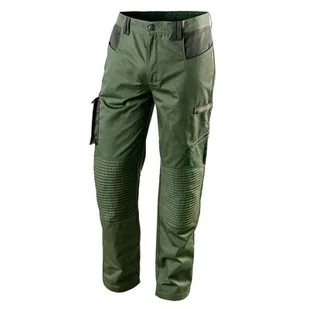 Spodnie robocze NEO z serii CAMO wykonane są z wysokiej jakości bawełniano-poliestrowej tkaniny. Profilowane kolana z przednim panelem wzmocnionym zaszewkami oraz pojemne i wytrzymałe kieszenie znacznie podnoszą komfort pracy. Wewnętrzna regulacja obwodu w pasie zapewnia łatwiejsze dopasowanie rozmiaru. Spodnie robocze wyróżnia modny oliwkowy kolor, a miejski krój pozwala na użytkowanie produktu również poza pracą. Gwarantem jakości jest certyfikat europejski oraz wykonanie zgodne z normą EN ISO 13688: