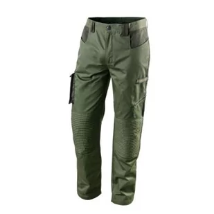 Spodnie robocze NEO z serii CAMO wykonane są z wysokiej jakości bawełniano-poliestrowej tkaniny. Profilowane kolana z przednim panelem wzmocnionym zaszewkami oraz pojemne i wytrzymałe kieszenie znacznie podnoszą komfort pracy. Wewnętrzna regulacja obwodu w pasie zapewnia łatwiejsze dopasowanie rozmiaru. Spodnie robocze wyróżnia modny oliwkowy kolor, a miejski krój pozwala na użytkowanie produktu również poza pracą. Gwarantem jakości jest certyfikat europejski oraz wykonanie zgodne z normą EN ISO 13688: