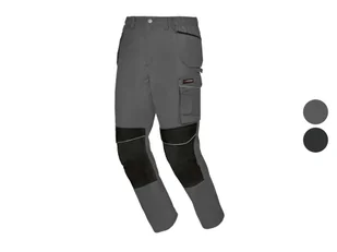 Parkside Performance® Męskie spodnie robocze Ripstop Cechy Wyprodukowano z materiału pochodzącego z recyklingu Z bawełną Wodoodporny materiał wierzchni dzięki wykończeniu Bionic-Finish® ECO Wzmocnienia na kolanach z Cordura® Obszar kolan co najmniej 10x bardziej odporny w porównaniu do spodni roboczych Parkside bez Cordura® Wygodny; częściowo elastyczny pas Odblaskowe elementy dekoracyjne Super praktyczne – 2 naszywane kieszenie boczne Z praktycznymi kieszeniami na narzędzia, telefon komórkowy itp. Możliwość zastosowania nakolanników (nie wchodzą w skład zestawu) Z wysokiej jakości, recyklingowym zamkiem błyskawicznym marki YKK-Natulon Optymalne dopasowanie dzięki elastanowi Lycra® Cechy produktu ;} Kolor: szary, czarny Wzór: nie Szczegóły: odblaskowe elementy dekoracyjne, 2 naszywane kieszenie boczne, wygodny, częściowo elastyczny pas Funkcja: