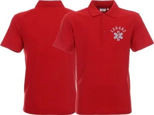 Promostars LPP - Koszulka Polo ratownicza czerwona męska odblaskowa - nadruk przód