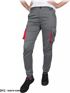 R.E.I.S. FRAU-JOG-T - Elastyczne spodnie ochronne do pasa FRAU-JOG, damskie 62% poliester, 35% bawełna, 3% elastan 240 g/m2 - szaro-czerwony- 36
