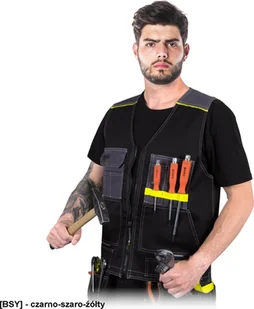 LH-POCKER - Bezrękawnik z mnóstwem kieszeni różnych rozmiarów - czarno-szaro-źółty 3XL