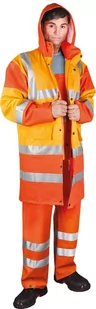 Wysokiej jakości płaszcz przeciwdeszczowy z elastycznego materiału o wysokiej wytrzymałości z pasami odblaskowymi. - wykonany z PU/PCV - grubość: 0.