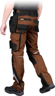 65% poliester, 35% bawełna - gramatura 300 g/m2 - zapinane na guzik i zamek błyskawiczny - cztery kieszenie po bokach, w tym dwie doszywane - doskonałe do przechowywania narzędzi - dwie kieszenie z tyłu, w tym jedna zapinana na rzep - kieszenie na nogawkach, w tym na telefon komórkowy - końcówka do przypięcia kluczy - na kolanach kieszenie na wkładki nakolannikowe zapinane na rzep - odblaskowe elementy - „S” shape - profilowane nogawki zapewniają lepsze dopasowanie się do sylwetki użytkownika - testowane na zawartość szkodliwych dla zdrowia substancji zgodnie ze standardami OEKO-TEX® Standard 100
