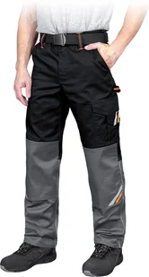 65% poliester, 35% bawełna - gramatura 295-300 g/m2 - wstawki z żółtego i pomarańczowego materiału 80% poliester, 20% bawełna - zapinane na guzik i zamek błyskawiczny - dwie kieszenie z tyłu na rzepy oraz dwie boczne - jedna kieszeń na nogawce na rzepy na akcesoria oraz jedna boczna podłużna - gumka w pasie w tylnej partii zwiększa swobodę ruchów oraz umożliwia lepsze dopasowanie - na kolanach kieszenie na wkładki nakolannikowe - końcówka do przypięcia kluczy - wstawki z elemementów odblaskowych - sprawdzona jakość, udoskonalony design