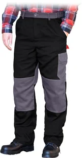 100% bawełna - gramatura 260-270 g/m2 - sześć kieszeni: dwie boczne, dwie tylne na rzep oraz dwie na nogawkach w tym jedna na rzep - możliwość regulacji w pasie dzięki gumce w bocznych partiach - na kolanach kieszenie na wkładki nakolannikowe