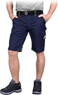 R.E.I.S. PROX-TS - spodnie ochronne do pasa z krótkimi nogawkami PROX, guzik, zamek, 4 kieszenie, odblaski, 65% poliester, 35% - granatowo-żółto-szary S