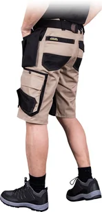 R.E.I.S. HARVER-TS - krótkie spodnie ochronne, 7 kieszeni, 65% poliester, 35% bawełna, gramatura 300 g/m2 - beżowo-czarny 2XL