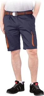 R.E.I.S. LAND-TS - Elastyczne męskie krótkie spodnie ochronne LAND, 62% poliester, 35% bawełna, 3% elastan, 240 g/m - granatowo-pomarańczowy 3XL