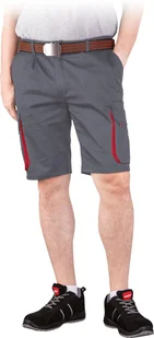 R.E.I.S. LAND-TS - Elastyczne męskie krótkie spodnie ochronne LAND, 62% poliester, 35% bawełna, 3% elastan, 240 g/m - szaro-czerwony S