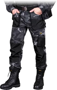 R.E.I.S. FORECO-T* - spodnie ochronne pas, mieszanka poliestrowo-bawełniana 260 g/m2, 6 kieszeni, kieszenie na nakolanniki, - moro-czarny 48