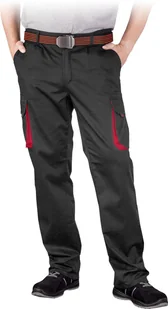 R.E.I.S. LAND-T - Elastyczne męskie spodnie ochronne do pasa LAND, 62% poliester, 35% bawełna, 3% elastan, 240 g/m - czarno-czerwony 58
