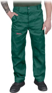 Spodnie ochronne do pasa typu Oliwier: - 65% poliester, 35% bawełna - gramatura 210-220 g/m2 - możliwość regulacji w pasie dzięki gumce w bocznych partiach - dwie boczne kieszenie - dodatkowa kieszeń z tyłu spodni.