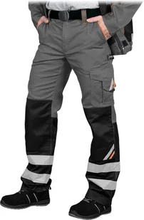- 65% poliester, 35% bawełna - gramatura 295-300 g/m2 - wstawki z żółtego i pomarańczowego materiału 80% poliester, 20% bawełna - zapinane na guzik i zamek błyskawiczny - dwie kieszenie po bokach - dwie kieszenie z tyłu zapinane na rzep - cztery kieszenie na nogawkach, w tym dwie zapinane na rzep - gumka w pasie w tylnej partii zwiększa swobodę ruchów oraz umożliwia lepsze dopasowanie - możliwość regulacji w pasie dzięki guzikom - na kolanach kieszenie na wkładki nakolannikowe - końcówka do przypięcia kluczy - pasy odblaskowe zapewniają lepszą widoczność - sprawdzona jakość, udoskonalony design - spełnia wymagania normy EN ISO 20471* (dotyczy pasów) oraz EN ISO 13688