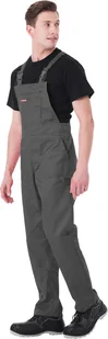 Materiał: 65% poliester, 35% bawełna, gramatura 262 g/m2. Cechy produktu: - możliwość regulacji w pasie dzięki dodatkowym guzikom oraz w długości szelkami, które to dodatkowo mają w tylnej partii gumkę, - dwie boczne kieszenie oraz jedna na nogawce, - dodatkowo dwie kieszenie w górnej partii spodni, w tym jedna na suwak, - wykonane z wysokiej jakości materiału, który zapewnia, iż po wielokrotnym praniu kolory pozostają wciąż intensywne, a rozmiar stabilny.
