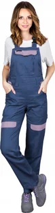 CORTON-L-B - Damskie spodnie ochronne ogrodniczki CORTON, tkane 100% bawełna 260 g/m2 6 kieszeni elementy odlaskowe - granatowo-ciemnowrzosowy 56