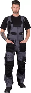 R.E.I.S. HARVER-B - spodnie ochronne ogrodniczki, 65% poliester, 35% bawełna 300 g/m, 10 kieszeni, pętelki na klucze i akcesoria - szaro-czarny 52