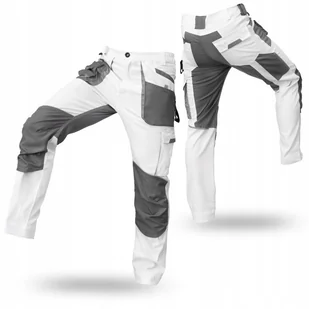 SPODNIE ROBOCZE MĘSKIE BOJÓWKI ELASTYCZNE WZMACNIANE LETNIE DO PASA BIAŁE