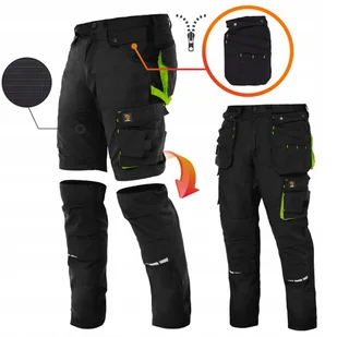 SPODNIE ROBOCZE monterskie męskie 2w1 KRÓTKIE SPODENKI odpinane czarne