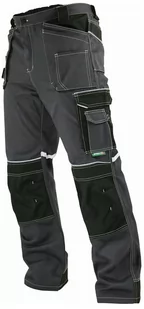 Poliester i bawełna Gramatura: 245g/m2 Podwójne szwy Liczne wzmocnienia z tkaniny o podwyższonej wytrzymałości OXFORD 600D Wiele praktycznych kieszeni Dodatkowe rygle zabezpieczające miejsca najbardziej podatne na rozprucie Elementy odblaskowe, szeroka taśma odblaskowa Kieszenie na wkładki piankowe wkładane od góry Szerokie mocne szluwki Mocny nitowany guzik Uchwyty na młotek i klucze Specjalnie opracowana konstrukcja z klinem, znacznie podnosząca komfort użytkowania