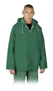 Kurtka przeciwdeszczowa z kapturem.- 70% PCV, 30% poliester- zapinana na suwak z dodatkowymi zapięciami na napy- kaptur ściągany na troczki- dwie kieszenie zewnętrzne- ściągacz w rękawach zabezpieczający przed wiatrem...