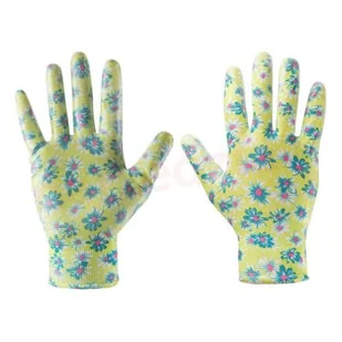 Uniwersalne rękawice ogrodowe VERTO (nr ref. 97H141) zakończone ściągaczem i pokryte nitrylem w kwiatowy wzór idealne do wszelkich prac ogrodowych. Powłoka nitrylowa zwiększa przyczepność do narzędzi i materiałów. Jest całkowicie szczelna dla cieczy i chroni przed olejami, smarami, tłuszczami, benzynami oraz produktami ropopochodnymi. Rękawice cechuje wysoka odporność na przecięcia i przekłucia oraz bardzo wysoka odporność na rozdzieranie i ścieranie. Idealne dopasowanie do dłoni pozwala na wykonywanie precyzyjnych prac.
