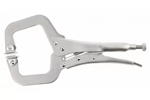11 Szczypce spawalnicze 280mm, "C" Szczypce spawalnicze do różnorodnych zastosowań. Idealnie sprawdzają się w pracach spawalniczych, hydraulicznych oraz mechanicznych. Charakterystyka przeznaczone do sciskania spawanych profi li; wyposazone w samonastawne noski, które dopasowuja sie do kształtu zaciskanego elementu; posiadaja regulacje srubowa rozwarcia szczek; powierzchnia niklowana; posiadaja zamkniecie typu europejskiego, z dzwignia do szybkiego zwalniania nacisku szczek.