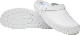 BMKLAPASUNI. Obuwie uniwersalne. Cholewka gładka wykonana ze skóry, zabezpieczona powłoką PU, która umożliwia czyszczenie i dezynfekcje. Pasek dwufunkcyjny przekładany na piętę. Spód PU o urzeźbieniu przeciwpoślizgowym. Wyści