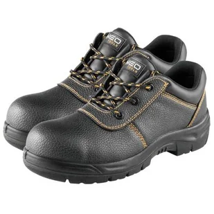 Półbuty skórzane S1, stalowy podnosek, rozmiar 42, 82-160 NEO to wygodne, wsuwane półbuty robocze, które zapewniają niezbędną ochronę podczas pracy. Wykonane zostały w klasie S1. Wyposażone są w skórzaną cholewkę z wytłaczanej dwoiny, dobrze izolującą stopę od podłoża. Na trwałość obuwia wpływają również metalowe szlufki, a także podwójne i potrójne szwy.