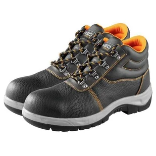 Przeznaczenie Ochrona stóp przy pracach warsztatowych, polecane w przemyśle, handlu i logistyce, przy pracach remontowych i renowacyjnych - na budowach, dla monterów i elektryków, zapewniają bezpieczeństwo i komfort termiczny przy wysokim komforcie noszenia. Buty robocze klasy S1, metalowe szlufki, skórzana cholewkaPodwójne i potrójne szwy, stalowy podnosek chroniący przed uderzeniami o energii 200 J, wbudowany zapiętek, system absorbujący wstrząsy,Zgodność z normą EN ISO 20345, wysoka odporność na oleje, benzynę i inne rozpuszczalniki organiczne, wygodny, ciekawy design, zamknięty obszar pięty, absorpcja energii w obszarze pięty, właściwości antyelektrostatyczne. Kategoria obuwia roboczego S1: stalowy podnosek,Materiałowa cholewka z tłoczonej skóry dwoinowej, dwumateriałowa podeszwa, stalowy podnosek. Trzewiki skórzane S1 SRC, stalowy podnosek, rozmiar 43, 82-165-43 marki NEO to trzewiki robocze w klasie S1 SRC, wyposażone w skórzaną cholewkę z wytłaczanej dwoiny, metalowe szlufki oraz podwójne i potrójne szwy wzmacniające konstrukcję.