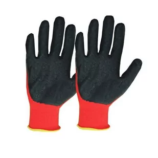 Rękawice czerwone powlekane szorstkim lateksem w części chwytnej. W torbie foliowej znajduje się 12 par rękawic w rozmiarze 10. Przeznaczone do lekkich prac.