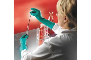Zielone, antystatyczne, jednorazowe rękawice ze 100% nitrylu bez domieszek, z podwiniętym brzegiem, pudrowane (A92-500) lub niepudrowe (A92-600 i A92-605), o całkowitej długości 24 cm i 30 cm.