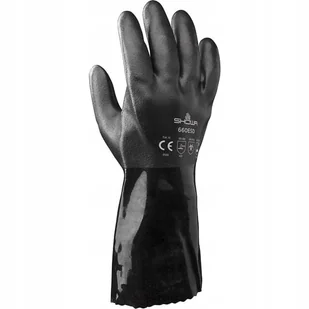 Rękawice ekonomiczne montażowe powlekane PCV SHOWA 660 ESD OLI RESISTANT Wytrzymałe rękawice antystatyczne wykonane z dzianiny bawełnianej powlekanej winylem PCVMateriał ten łączy w sobie wysoką odporność na ścieranie, a także ochronę przed popularnymi kwasami, zasadami, rozpuszczalnikami oraz substancjami alkoholowymiZapewnia także ochronę przedmiotów przed ładunkami elektrostatycznymi wywołującymi uszkodzenia i wybuchyDzięki wysokiej szczelności nadają się do pracy w wilgotnym i mokrym środowisku pracyWewnątrz znajduje się bawełniany wkład o bezszwowym kroju, który nie tylko minimalizuje ryzyko podrażnień, ale również znakomicie wchłania pot. Anatomiczny kształt zwiększa komfort użytkowaniaRękawice nie krępują ruchówProdukt zalicza się do 3 kategorii ochronnej, dotyczącej czynników wyższego ryzykaRękawice w kolorze czarnym mają długość 30 cmWystępują w rozmiarach 9-L oraz 10-XLNależy pamiętać, że wybór rękawic musi być dokonany zgodnie z wymogami konkretnego miejsca pracy, rodzajem zagrożenia i odpowiednimi warunkami środowiskowymiZastosowanie rękawiczek Showa 660 ESD: Szczególnie polecane w strefach zagrożonych wybuchem (stacje paliw, przy tankowaniu gazem), w przemyśle lotniczym, petrochemicznym, morskim, chemicznym czy w budownictwie. Znajdują zastosowanie także przy natryskiwaniu i obróbce chemikaliami, przygotowaniu powłok, szczelinowaniu hydraulicznym. Przy robotach publicznych oraz z komponentami alkalicznymi, kwasowymiKolor czarny