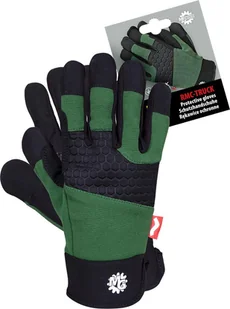 Rękawice ochronne wykonane z wysokiej jakości skóry syntetycznej połączonej z oddychającym materiałem spandex.