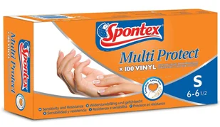 100 jednorazowych rękawiczek winylowych z długim mankietem. Może być noszony na lewą lub prawą rękę. Bardzo cienkie i wytrzymałe. Ten produkt nie zawiera naturalnego lateksu i dlatego jest zalecany dla alergików. Jednorazowe rękawice winylowe Spontex 121-20076 Multi Protect rozmiar 6, przezroczyste (opakowanie 100 szt.)