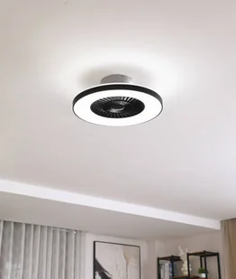 Czarny wentylator sufitowy LED Paavo: inteligentne sterowanie i pilot Wentylator sufitowy LED Paavo oprócz eleganckiego wyglądu oferuje liczne opcje ustawień i sterowania. Czy to za pomocą pilota, czy aplikacji Tuya, wszystko można ustawić z wygodnej sofy. Paavo jest wykonany z tworzywa sztucznego i ma błyszczący efekt gwiazdy na dyfuzorze, oferując regulowane opcje, takie jak prędkość wentylatora, jasność światła i różne barwy światła, timer i funkcję oświetlenia nocnego. Dane techniczne wentylatora: