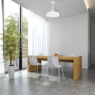 Wentylator sufitowy Alaska Mini z pilotem, trzema łopatkami i lampą z funkcją CCT Wentylator sufitowy LED Alaska Mini łączy w sobie orzeźwiający powiew powietrza z nowoczesnym oświetleniem ogólnym. Trzy łopatki wykonane z przezroczystego tworzywa sztucznego wysuwają się tylko podczas pracy wentylatora i są ukryte nad okrągłym korpusem, gdy wentylator jest wyłączony. W tym ostatnim znajduje się mocna lampa LED, której światło może być ściemniane, a temperatura światła regulowana i która świeci w dół na dużej powierzchni przez oszronioną pokrywę. Funkcje - prędkość wentylatora regulowana w dziewięciu stopniach - regulowana barwa światła (od ciepłej bieli do uniwersalnej bieli) - światło ściemniane bezstopniowo Dzięki odwracalnemu kierunkowi obrotów wentylator może być używany w trybie letnim lub zimowym. Latem zapewnia chłodzącą bryzę, a zimą korzystne rozprowadzanie ogrzanego powietrza pomaga obniżyć koszty ogrzewania.