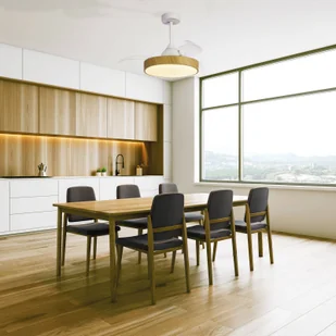 Dane techniczne - Cichy silnik DC o mocy maks. 25 W - Wentylator z dziewięciostopniową regulacją: moc od 6 do 25 W, prędkość od 150 do 260 obr/min, cyrkulacja powietrza od 3600 do 6700 m³/h, poziom hałasu od 33 do 45 db - Barwa światła regulowana od ciepłej bieli (2700 K) do uniwersalnej bieli (5000 K) - W zestawie pilot - W zestawie krótki i długi pręt montażowy do pomieszczeń o różnej wysokości