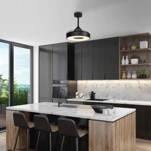 Wentylator sufitowy LED Coin Mini z pilotem, trzema łopatkami i lampą z funkcją CCT Wentylator sufitowy LED Coin Mini łączy w sobie orzeźwiający powiew powietrza z nowoczesnym oświetleniem ogólnym. Trzy przezroczyste plastikowe łopatki wysuwają się tylko podczas pracy wentylatora i są ukryte nad okrągłym korpusem, gdy wentylator jest wyłączony. W tym ostatnim znajduje się mocna lampa LED, której światło może być ściemniane, a temperatura światła regulowana i która świeci w dół na dużej powierzchni przez oszronioną pokrywę. Funkcje - prędkość wentylatora regulowana w dziewięciu stopniach - regulowana barwa światła (od ciepłej bieli do uniwersalnej bieli) - światło ściemniane bezstopniowo Dzięki odwracalnemu kierunkowi obrotów wentylator może być używany w trybie letnim lub zimowym. Latem zapewnia chłodzącą bryzę, a zimą korzystne rozprowadzanie ogrzanego powietrza pomaga obniżyć koszty ogrzewania.